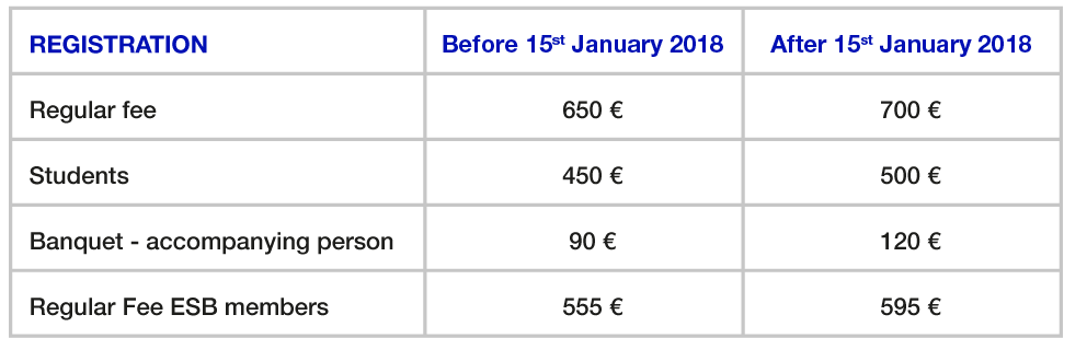 • Cancellation Policy: Registration fee will be refunded with a cancellation fee of 100 EUR if a request is received in writing (e-mail) by February 28th , 2018. After this date NO refund will be made.